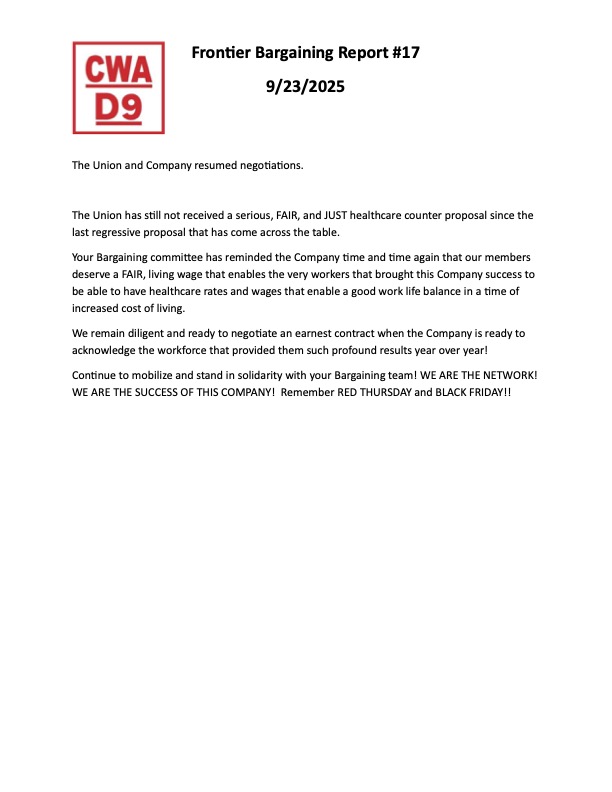 Posted in Articles, CWA Communications, Frontier, Frontier Bargaining