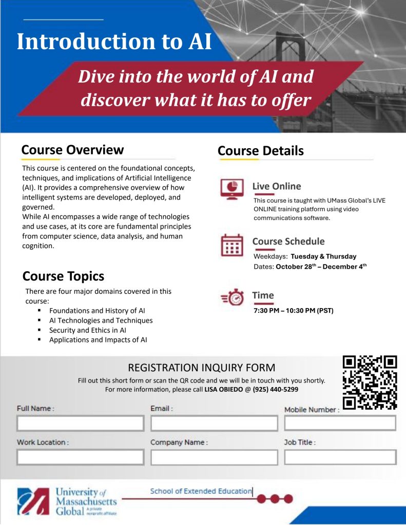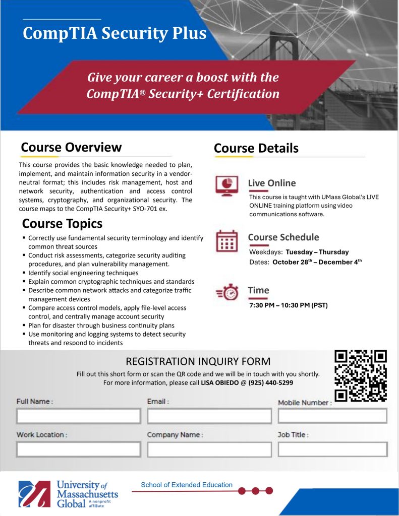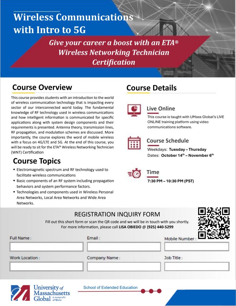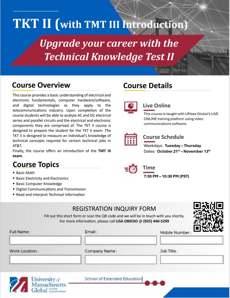 We are pleased to share with you the latest classes covered by our CWA negotiated Frontier Tuition Assistance program offered by UMass Global. These cutting-edge classes are fully covered by your annual benefit with no out-of-pocket expense to you. They each have the flexibility you need to learn from home through an innovative, live-streaming platform. All classes are LIVE ONLINE with expert instructors using UMass Global’s Adobe Connect Pro platform. And in case you miss a session, all class sessions will be recorded and can be watched at your convenience.