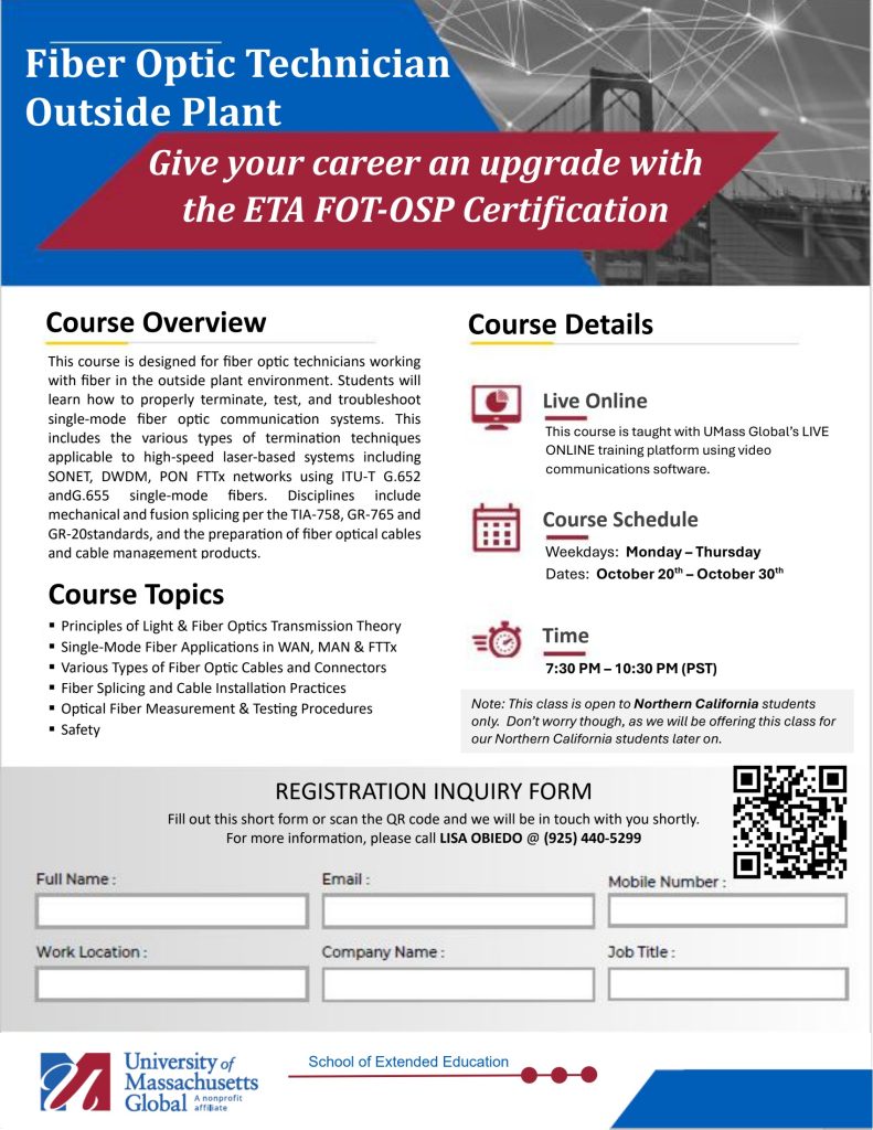 If you are interested in enhancing your skills, securing your career and preparing yourself for advancement in this rapidly changing industry, please click on the link below the class you are interested in enrolling in. You may also refer to the attached flyers. You’ll find QR codes for online registration forms and more detailed information for each class.