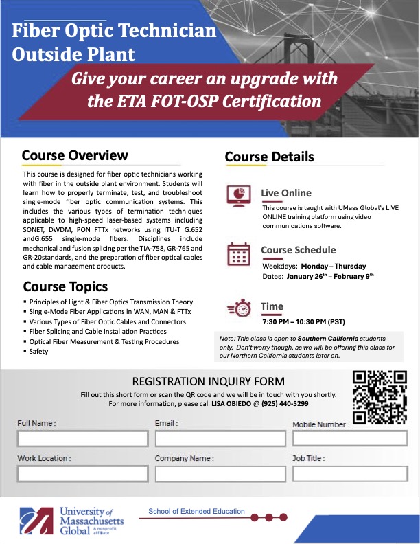 If you are interested in enhancing your skills, securing your career and preparing yourself for advancement in this rapidly changing industry, please click on the link below the class you are interested in enrolling in. You may also refer to the attached flyers. You’ll find QR codes for online registration forms and more detailed information for each class.